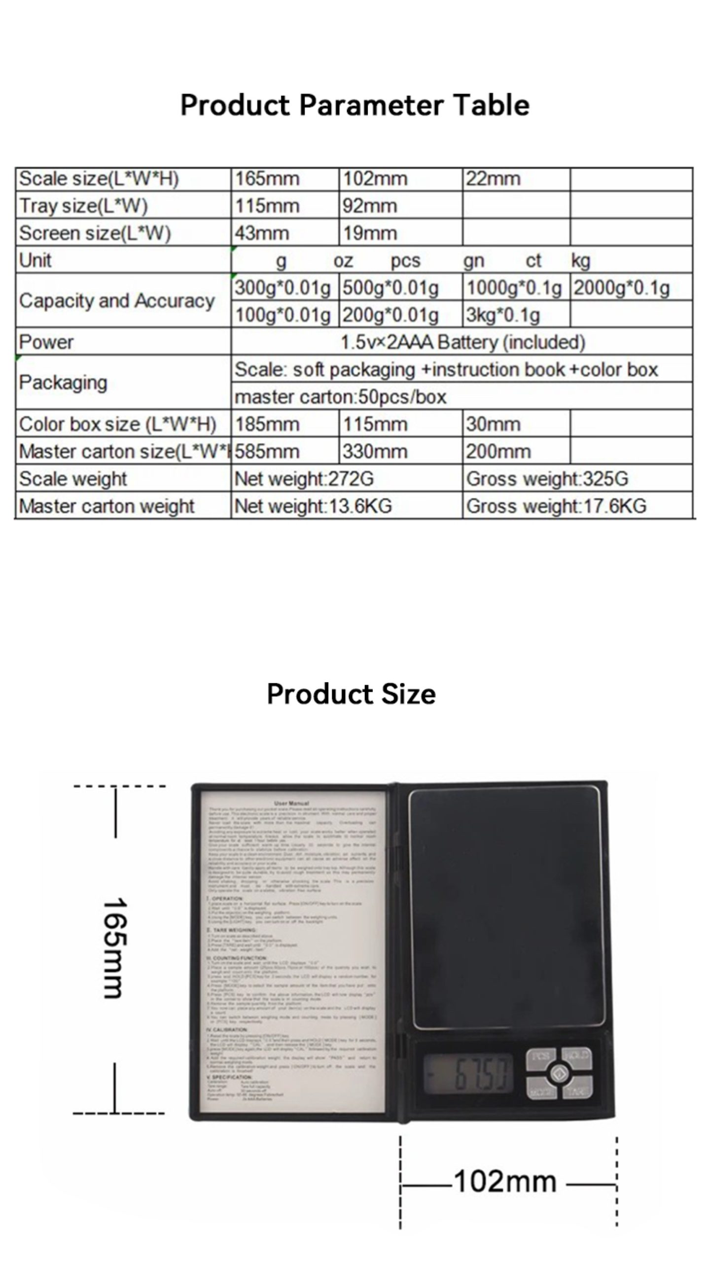 ترازو دیجیتالی مدل NoteBook (ظرفیت ۲ کیلو) اورجینال